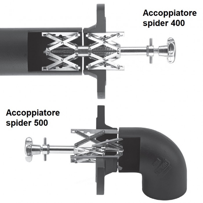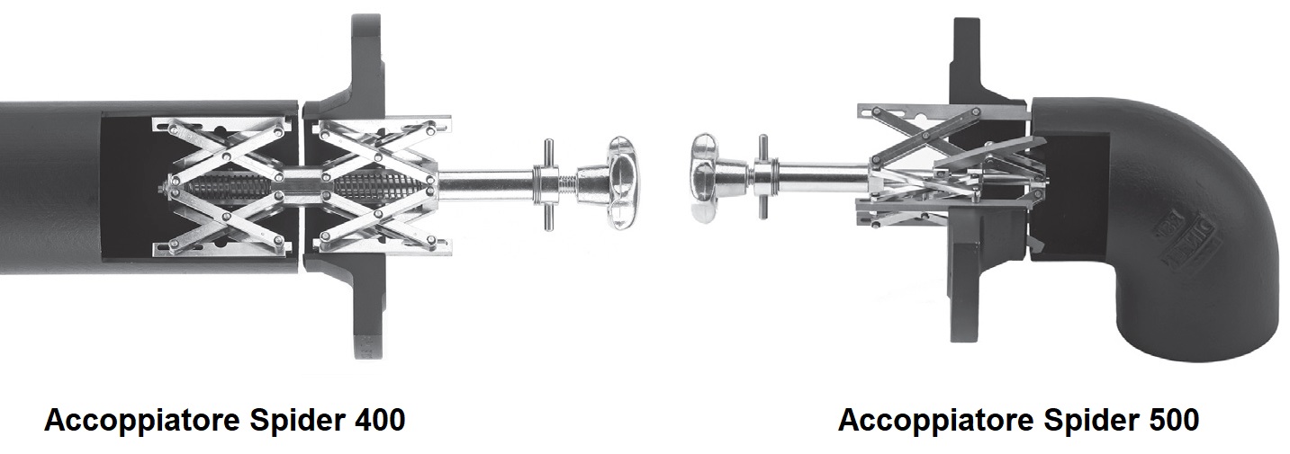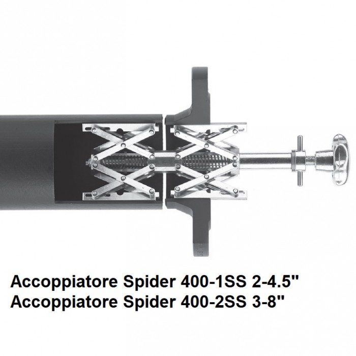 Morsetto Spider Clamp della Serie 400 di Tag-Pipe, dotato di rotaie in acciaio inox per il posizionamento, impiegato nell'allineamento dei tubi nelle operazioni di saldatura.